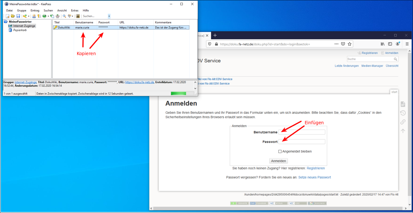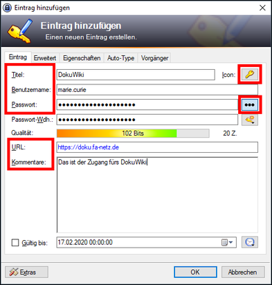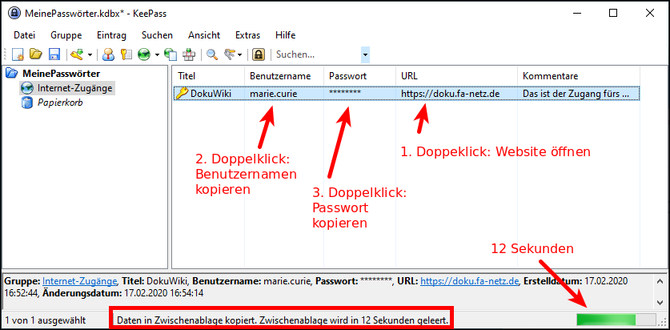 • Hier wird erklärt, wie du Einträge in KeePass erstellst und diese verwendest