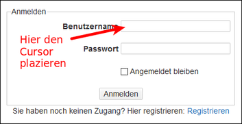 1. Klicke mit der Maus auf der Website in das Feld für den Benutzernamen: