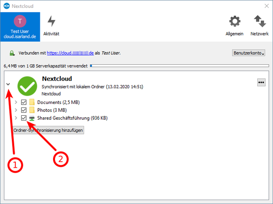 - Der Nextcloud-Client läuft im Hintergrund auf deinem PC und „zieht“ dir die Daten aus der Cloud auf einen Ordner auf deiner lokalen Festplatte.