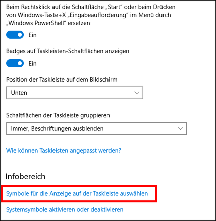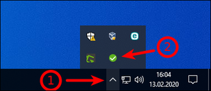 - Wenn du möchtest, dass das Symbol dauerhaft angezeigt wird, klicke mit der Rechten Maustaste auf das kleine Hütchen (Nr. 1 im vorherigen Bild) und wähle