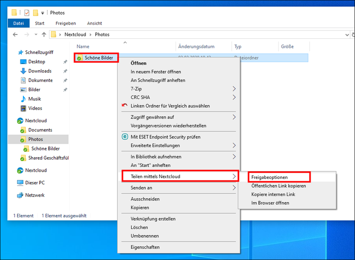 - Direkt im Windows-Exporer (dazu muss der Nextcloud-Client installiert sein)