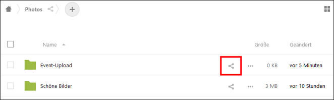 - Klicke erneut auf das Freigabe-Symbol des Ordners