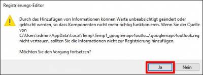 - Öffne die ZIP-Datei mit einem Doppelklick und dann die Datei googlemap4outlook.reg ebenfalls mit einem Doppelklick